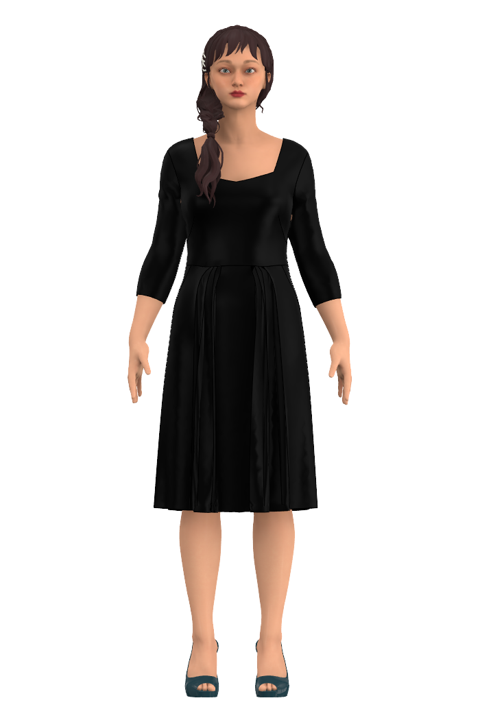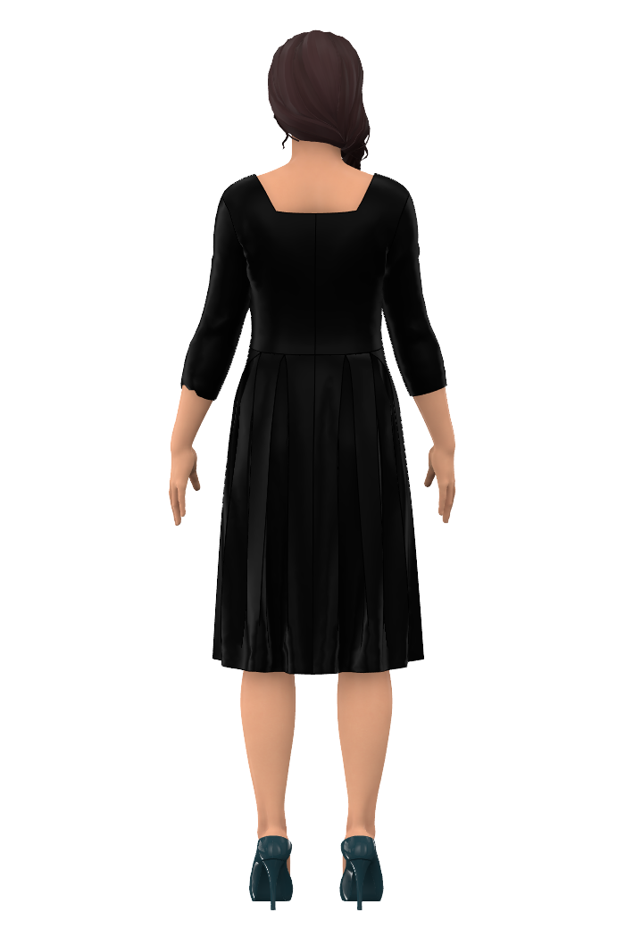 Gerda har lagda veck i kjoldelen och en vacker urringning även baktill. Klänningen är designad och inspirerad av vår grundares morfars mor, Gerda, som gärna bar dessa klassiska sommarklänningar med rak kjol, lagda veck och markerad midja på varma sommardagar hemma på gården utanför Enköping.