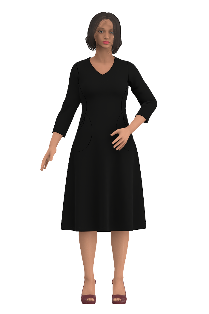 Ingrid har en smickrande v-ringning, 3/4 ärmar, bystsnitt så du får en snygg form och passform. Och naturligtvis – fickor!