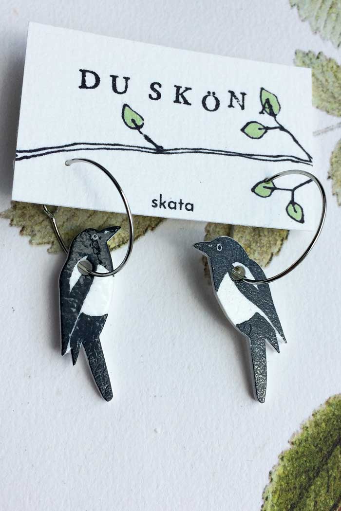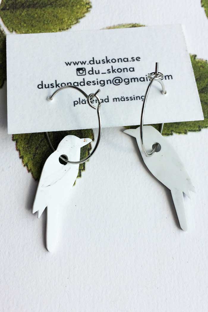 DU SKÖNA är ett Malmöbaserat designmärke med hjärtat i Värmland där Anna designar alla smycken och tillverkar dom förhand av olika återbrukade material, mässing och krympplast med djur- och växtillustrationer.