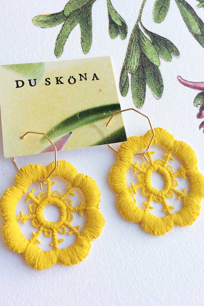 DU SKÖNA är ett Malmöbaserat designmärke med hjärtat i Värmland där Anna designar alla smycken och tillverkar dom förhand av olika återbrukade material, mässing och krympplast med djur- och växtillustrationer.