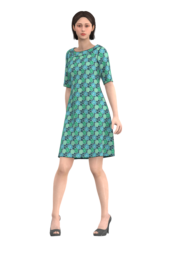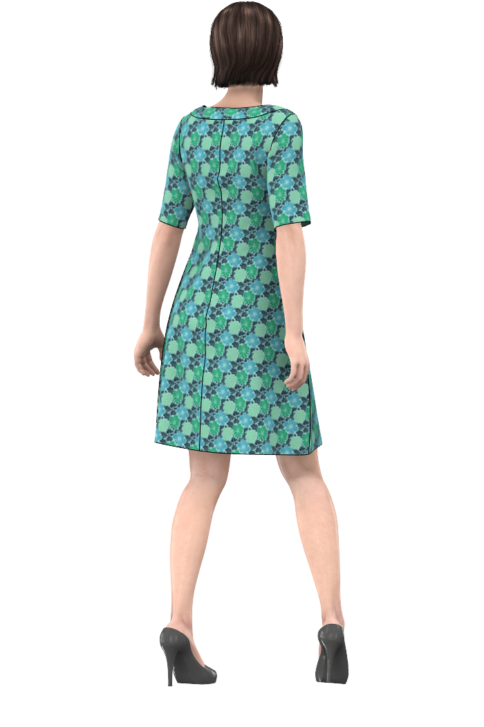 Klänning Sara slutar strax ovanför knät och båthalskragen är vändsydd. Längden gör att den funkar lika bra barbent som med strumpbyxor och leggings. Och på vintern hur bra som helst ihop med jeans! Kjoldelen är lite lätt utställd för fint fall och passformen är tajt över byst och arm för att sen släppa och bli lösare över mage och rumpa. Halsringningen är klassisk båthals som ligger på lagom avstånd från halsen utan att ligga på men ändå täcka bh-band.