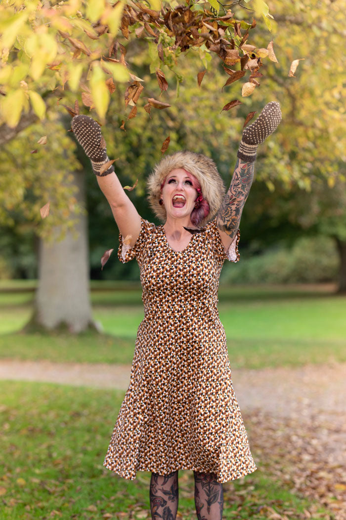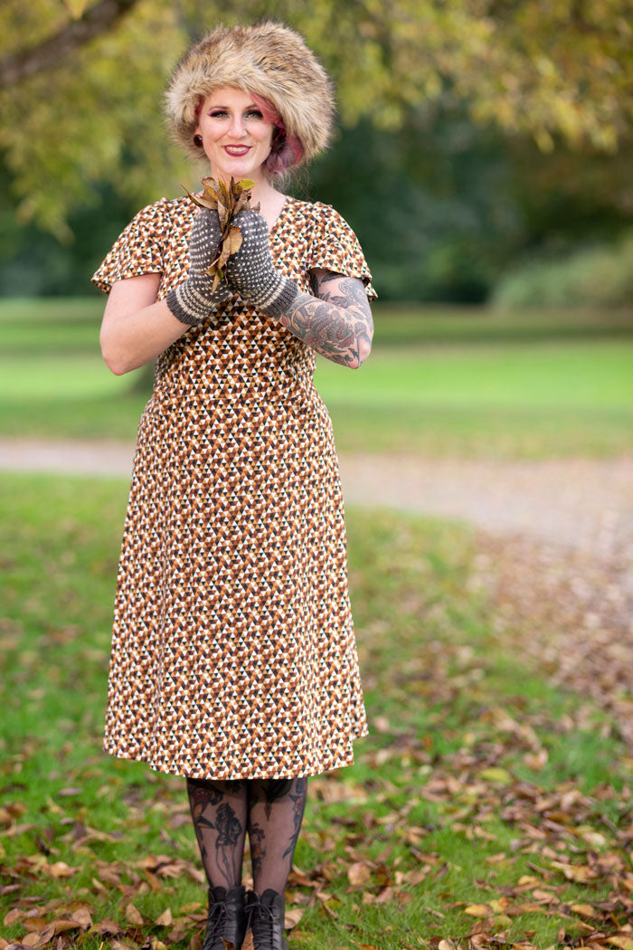Kerstin ist ein von weiblichen Formen inspiriertes Kleid mit einem wunderschönen V-Ausschnitt vorne und hinten. Schöne, schmeichelhafte Passform aus weichem Jerseystoff mit Brustausschnitt und definierter Taille. Natürlich hat es Vordertaschen. Die Länge des Kleides ist eine unserer längsten und reicht bis zur Wade. Die Form des Ärmels ist für eine Glockenform leicht ausgestellt und reicht von halber Länge bis knapp über den Ellenbogen.