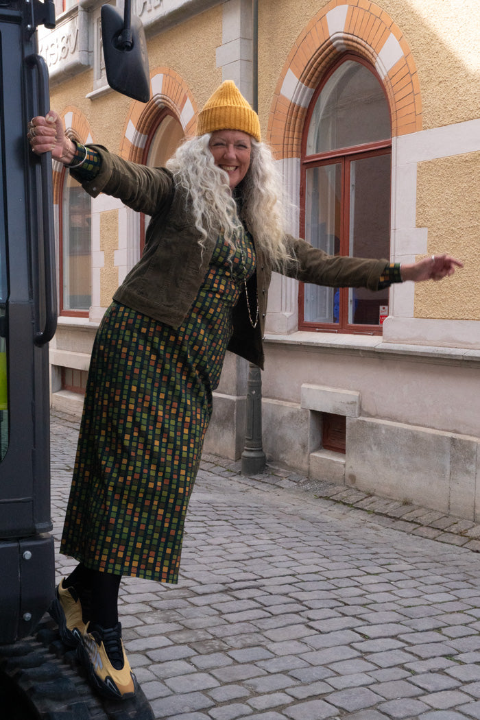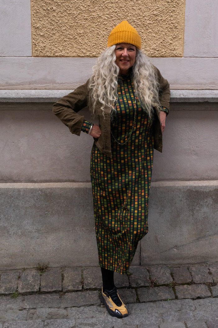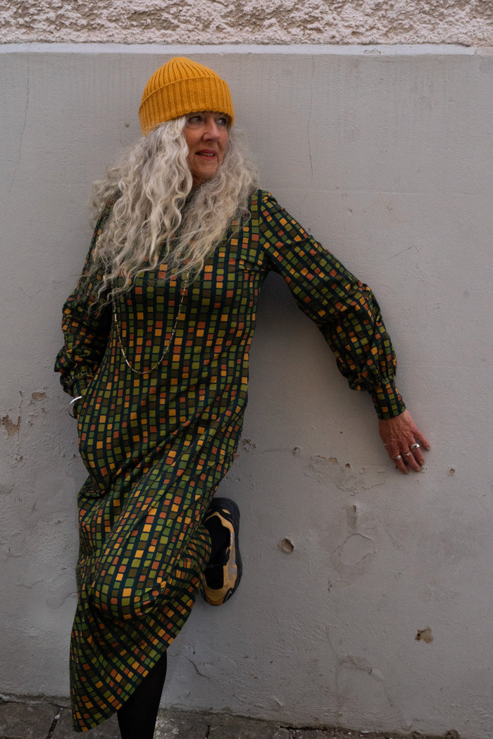 Das Claudia-Kleid ist eine Neuankömmling für Herbst 2025! Es ist in zwei Längen erhältlich und hier haben wir es in der längeren Version.