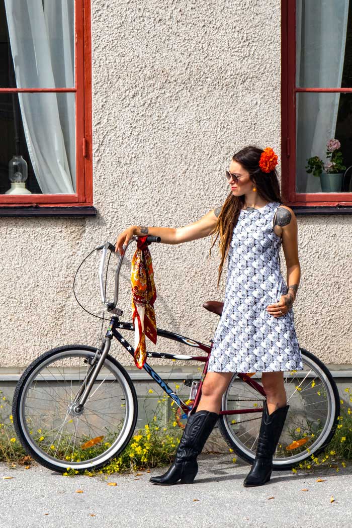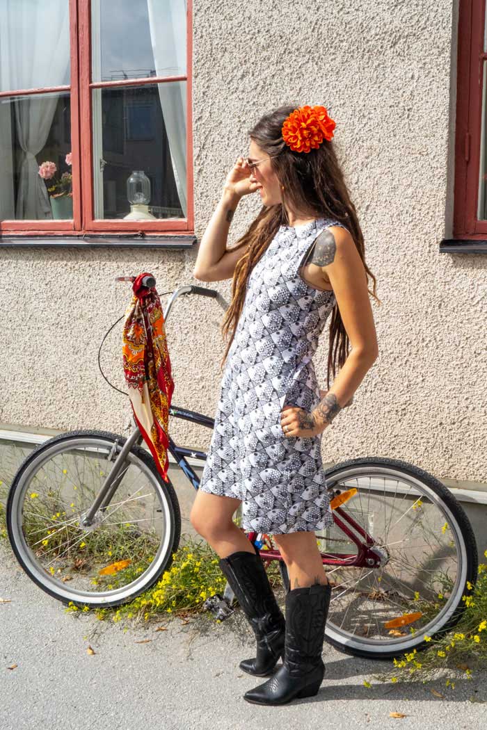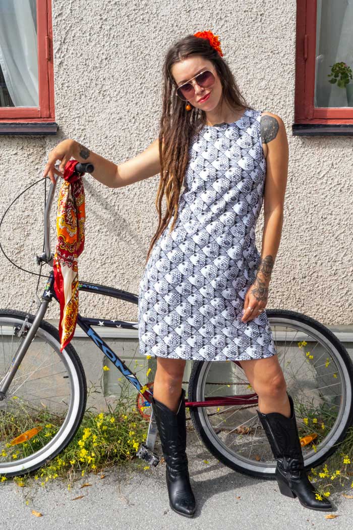 Sommarklänningen Anna, en klassisk kort ärmlös sommarklänning med inspiration från 60-talet, från vårt märke Esther & Inez!