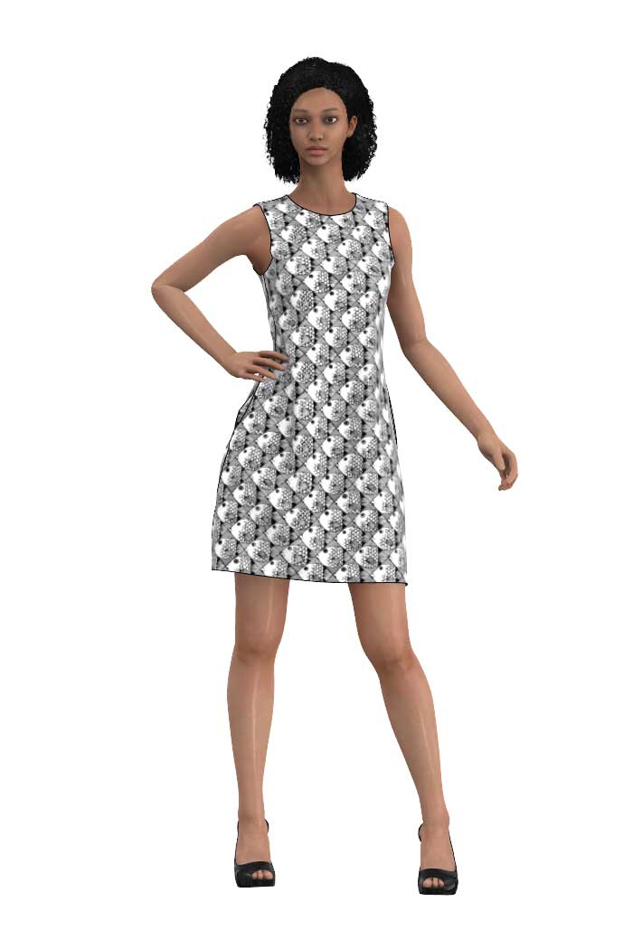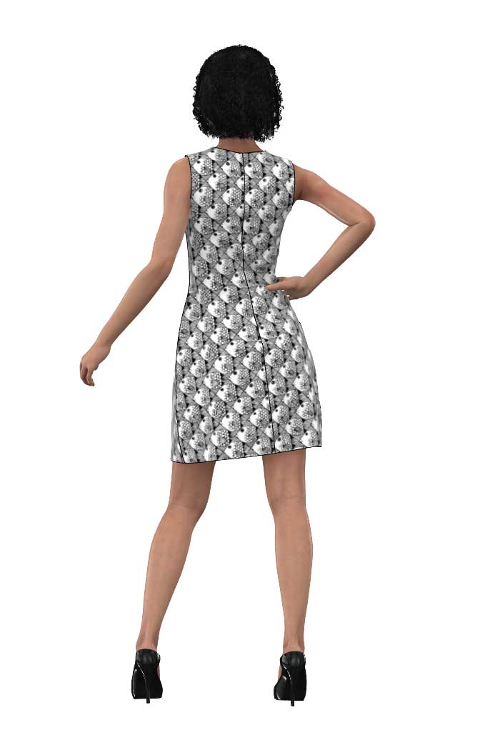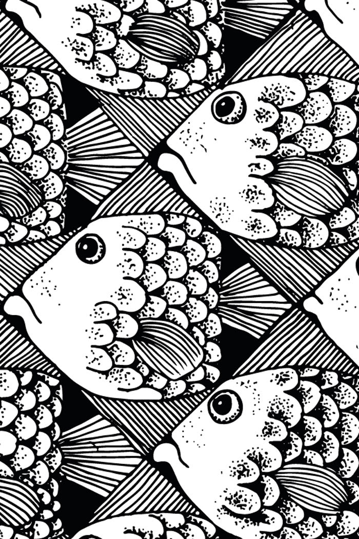 KLÄNNINGEN ANNA I  SVARTVITT FISKMÖNSTER - SHOAL OF FISH BLACK