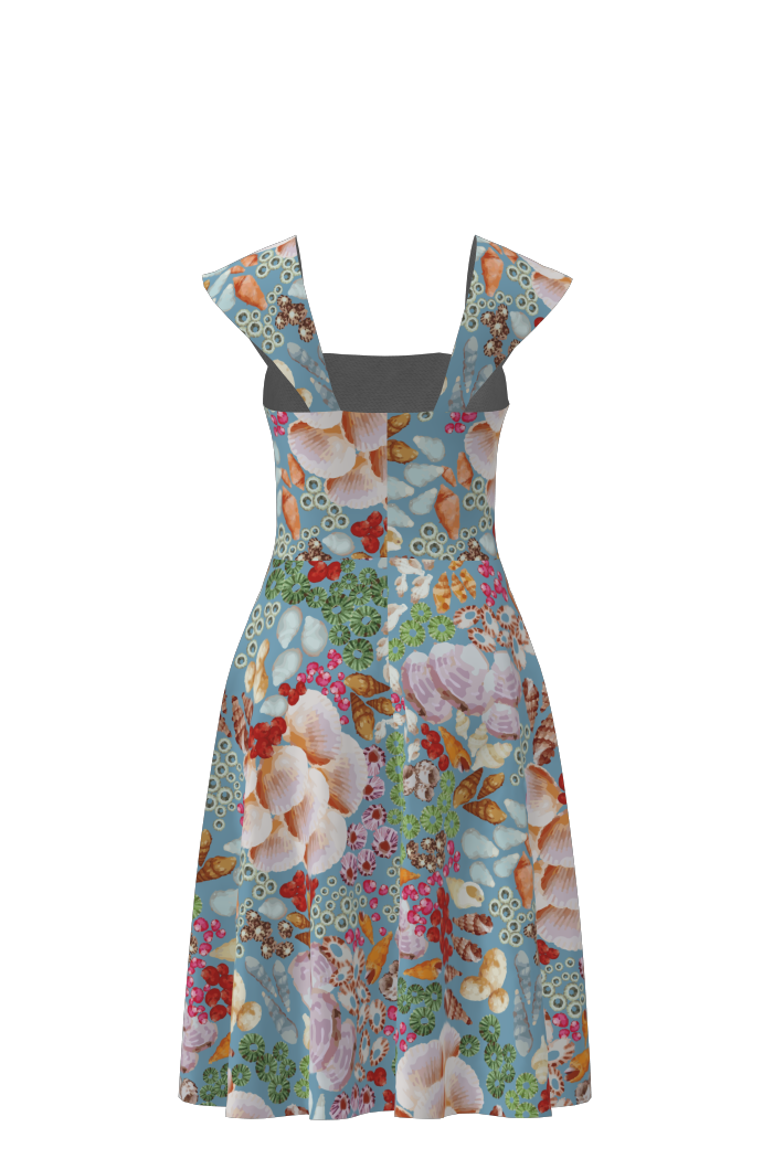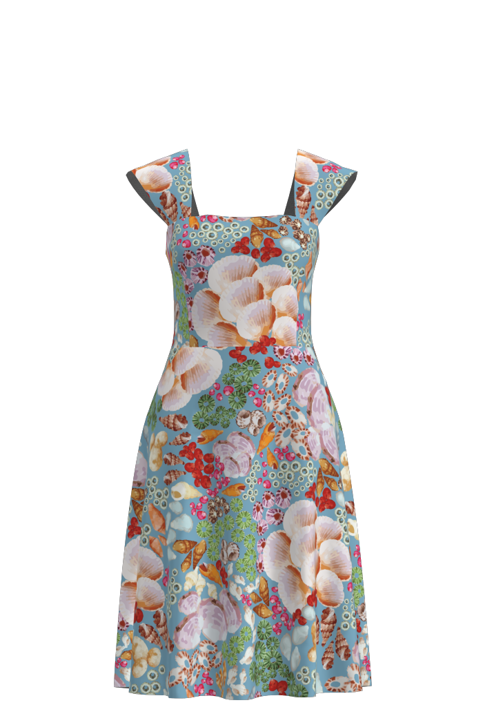 Britta hat eine figurbetonte Passform im oberen Brustbereich mit Brusteinsatz und stilvollen Schulterdetails. Sie hat eine betonte Taille mit schönem Schnitt und der leicht ausgestellte Rockteil sorgt für eine schöne Passform. Die Taschen befinden sich an der Seite und das Sommerkleid reicht bis zur Wade.