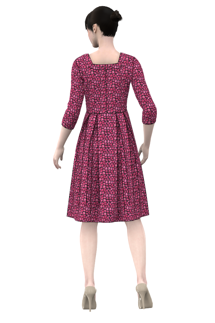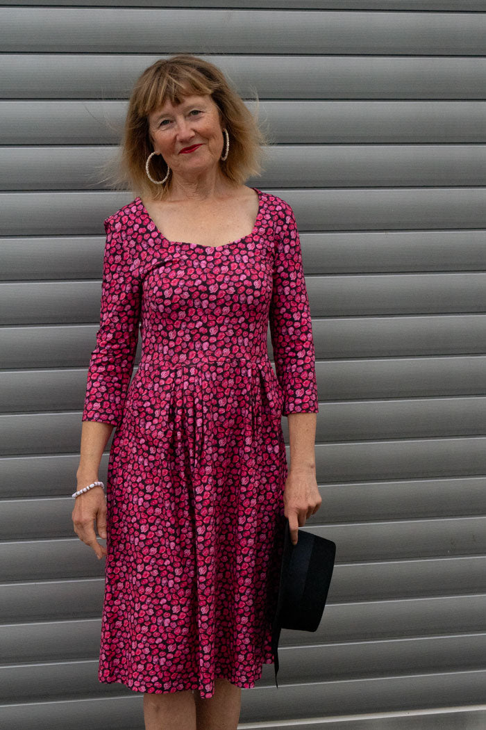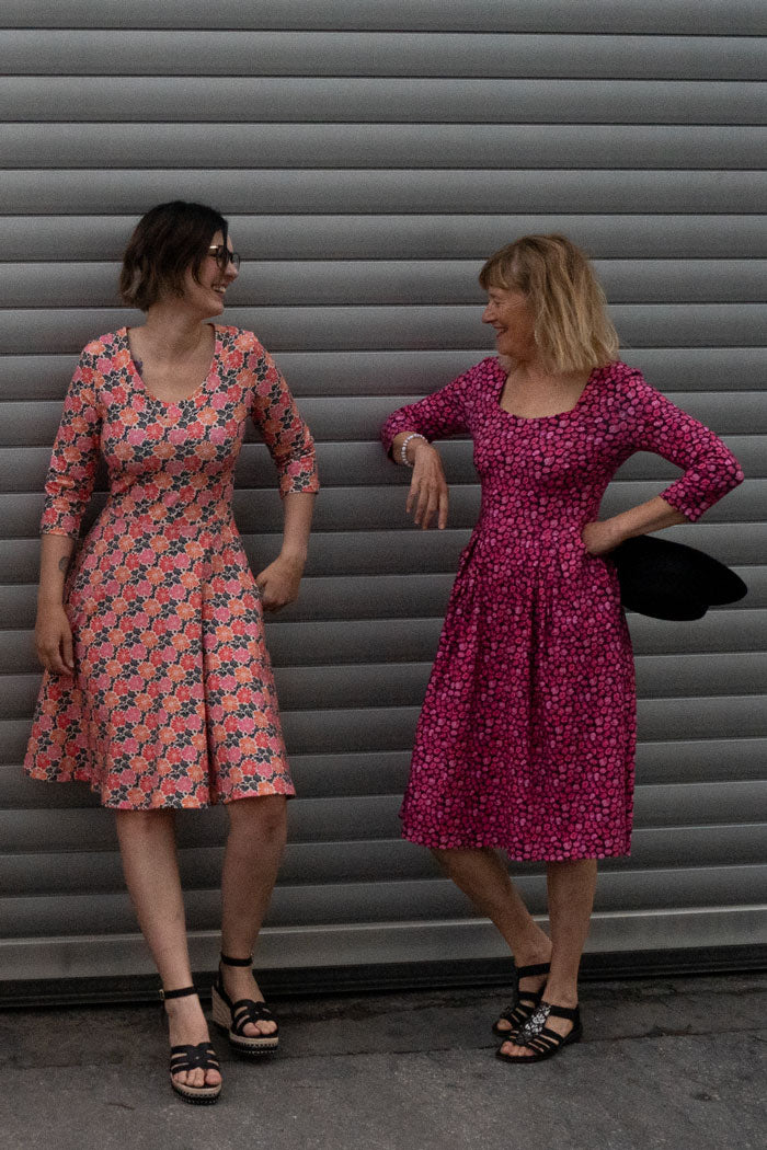 Das Kleid Gerda hat Falten im Rock und einen wunderschönen Rückenausschnitt. Es wurde von der Urgroßmutter unserer Gründerin, Gerda, entworfen und inspiriert, die diese klassischen Sommerkleider mit geradem Rock, Falten und betonter Taille an warmen Sommertagen auf ihrem Bauernhof bei Enköping so gerne trug.