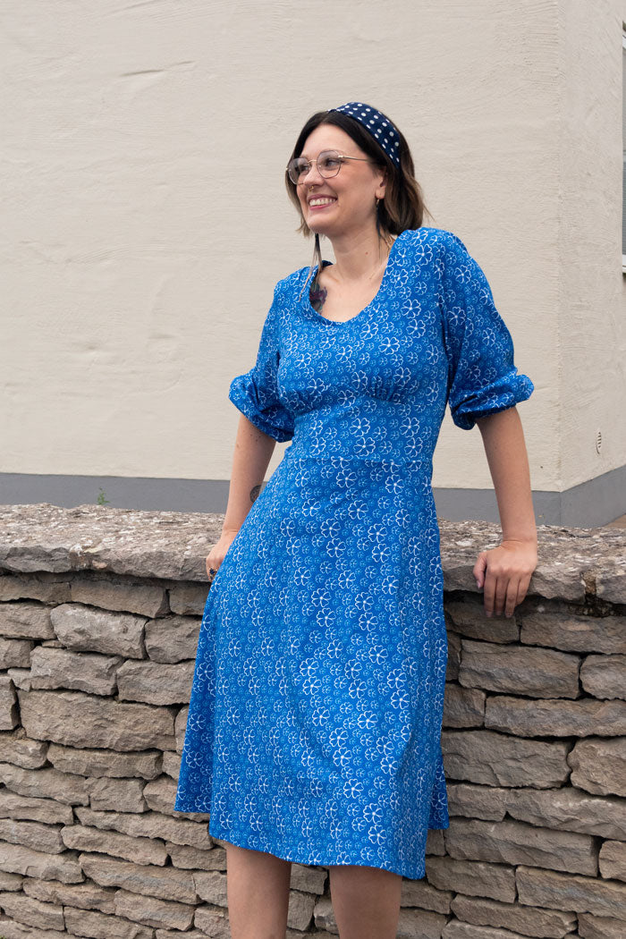 Asta in the lovely Majlean fabric is a dress that fills your wardrobe with energy and easy elegance. The soft, organic cotton jersey feels comfortable against the skin and gives the garment a natural, beautiful fall. A nice detail is the small gather at the bust that creates subtle structure, while the puff in the sleeve adds extra charm and a slightly romantic feel.