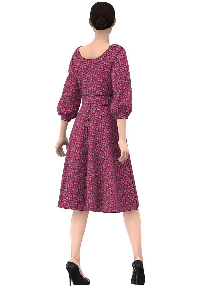 DRESS ASTA IN PINK PATTERN ON BLACK BASE, FABRIC RAZIE PINK