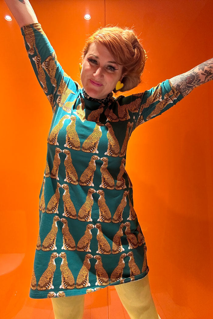 Designed by Sara Högblom - garment, fit and the wonderful fabric print LeoStatue petrol.