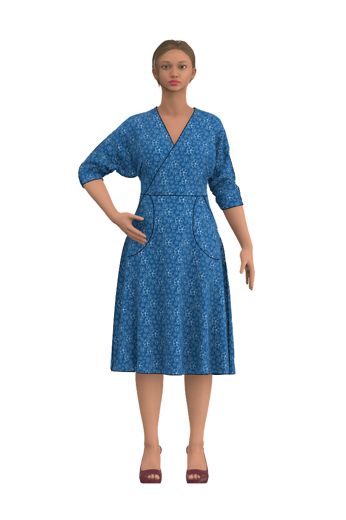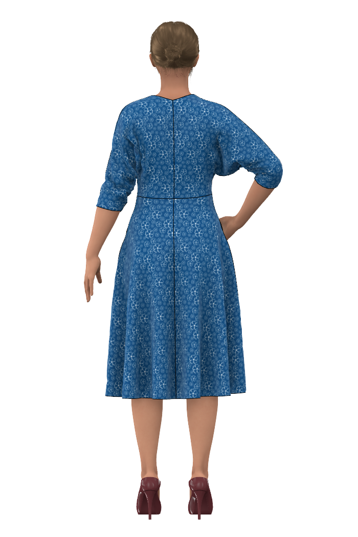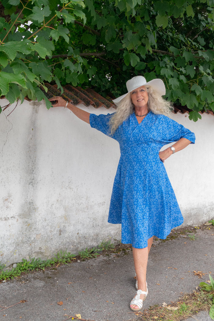 50s inspired fit and cuts with so-called "batwing" sleeves that are half-length with a loose and casual fit. Dress Elsa has a defined waist and bell-shaped skirt section. Wrap-around V-neckline at the front and a pretty V-neckline at the back. Of course, Elsa also has comfortable pockets and bust insert for a flattering fit.