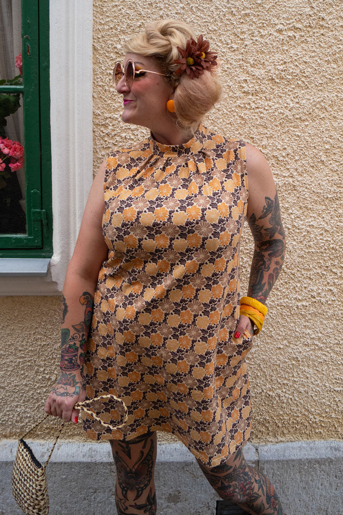 Helga is a dress that carries both style and confidence with an inspiring 60s vibe and modern comfort. It ends just above the knees and has a slight A-shaped silhouette that gives movement and a flattering fall without feeling tight. It is a model that plays with classic lines but still feels fresh and contemporary.