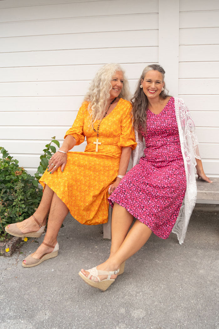 The dress's harmonious turquoise color and soft, organic fabric make it both stylish and comfortable, a perfect slow fashion garment for both everyday and party wear. Kerstin Razie pink is produced locally in Visby and is available in plus size sizes, making it a conscious and versatile choice for all body shapes.