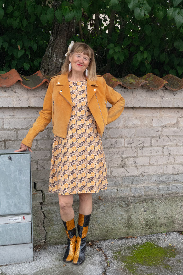 The classic Sara dress is made from wonderfully soft organic cotton jersey and is GOTS certified. It has a comfortable and flattering fit, which is why Sara is just as nice for everyday wear as it is for a party, and just as stylish to wear on the town as it is comfortable to wear for an evening on the sofa. Perfect to combine with tights – or why not leggings in matching fabric!
