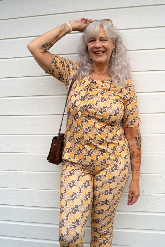 The yellow BeeFlower pattern gives the leggings a confident and playful character, perfect for those who want something both comfortable and expressive. Linn Bootcut works equally well with a solid-colored top or with a matching top for a complete, colorful look.