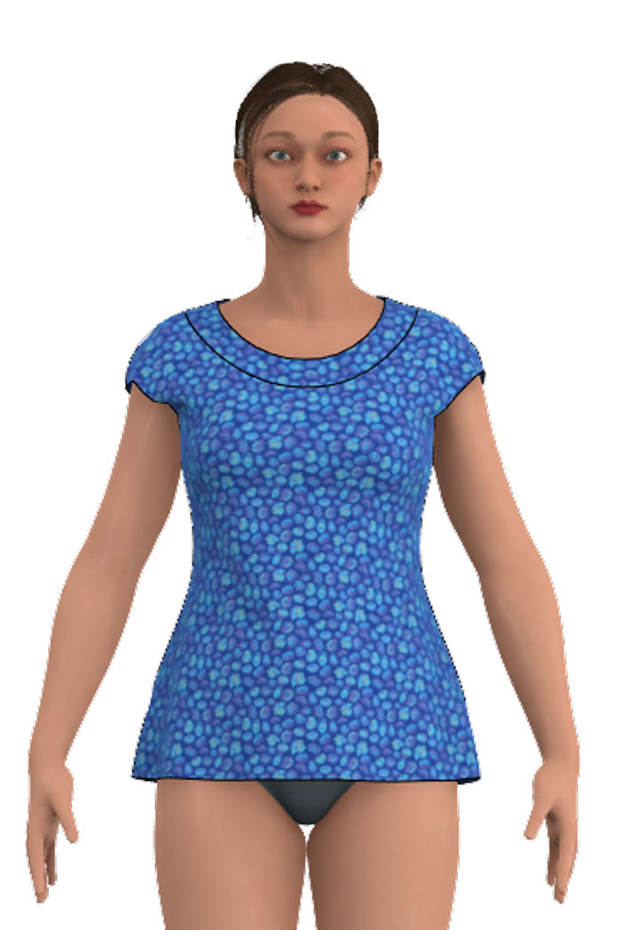 With its cinched waist and form-fitting design, Eivor follows the body's natural curves. It has a turned-down boat neckline and cap sleeves, giving it an elegant and timeless look. The length reaches mid-thigh and the fit is tight at the top with a looser fit over the stomach and butt, making it a flattering choice for all body types.