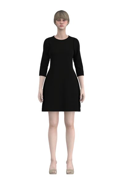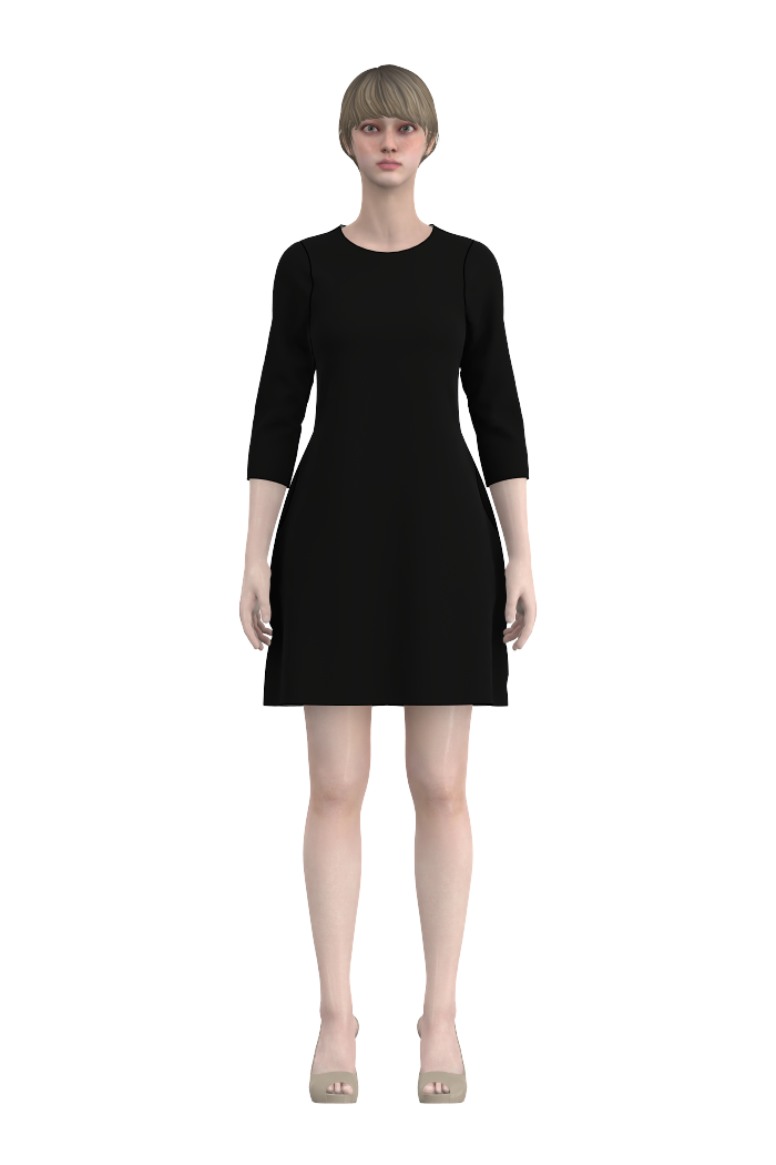 Klänning Bardot slutar på nedre delen av låret och halsringningen är rundad. Längden gör att den funkar lika bra barbent som med strumpbyxor och leggings. Och på vintern hur bra som helst ihop med jeans! Kjoldelen är ganska så rak och passformen är tajt över byst och arm för att sen släppa och bli lite lösare över mage och rumpa. Halsringningen är rundad som ligger på lagom avstånd från halsen utan att ligga på men ändå få en fin form. Sara Högblom har gjort vår plaggdesign och passform.