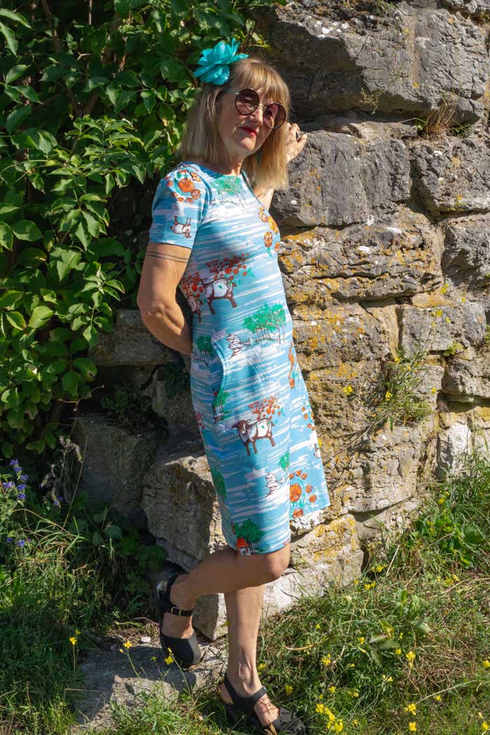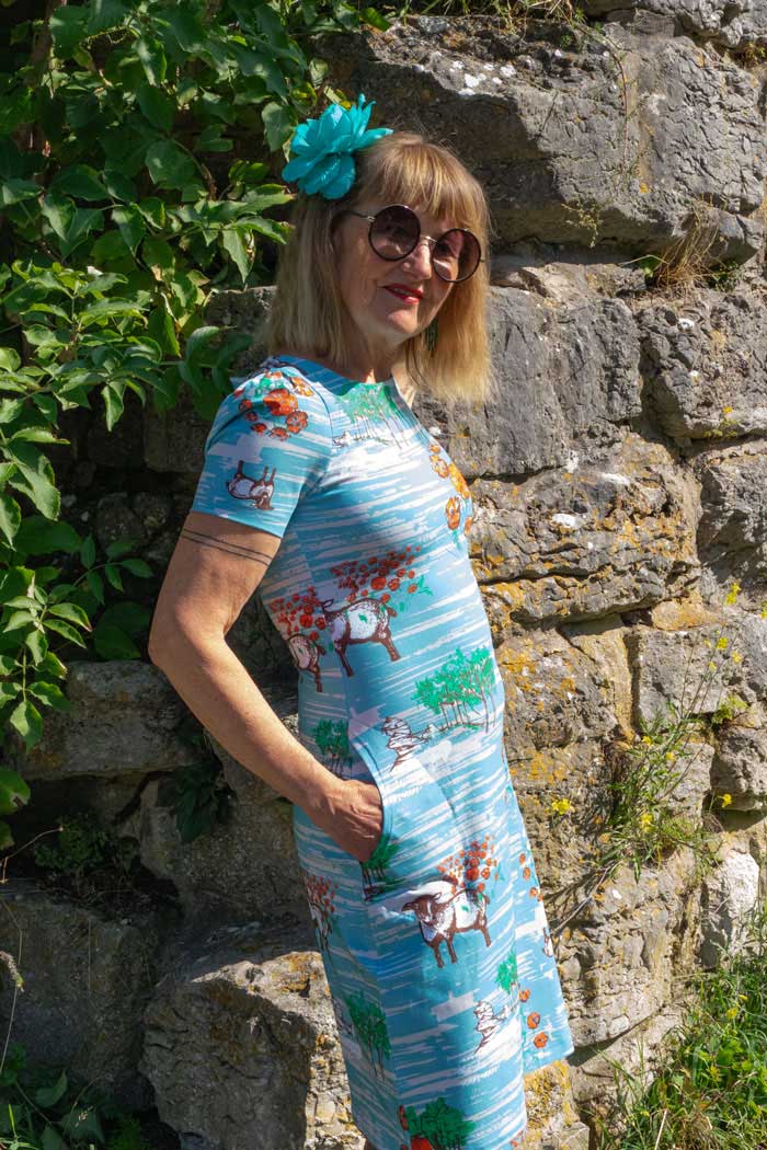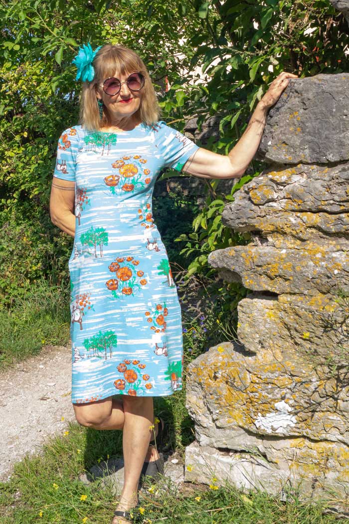 KLÄNNINGEN BARDOT MED KORT ÄRM I GOTLANDSINSPIRERAT TYG