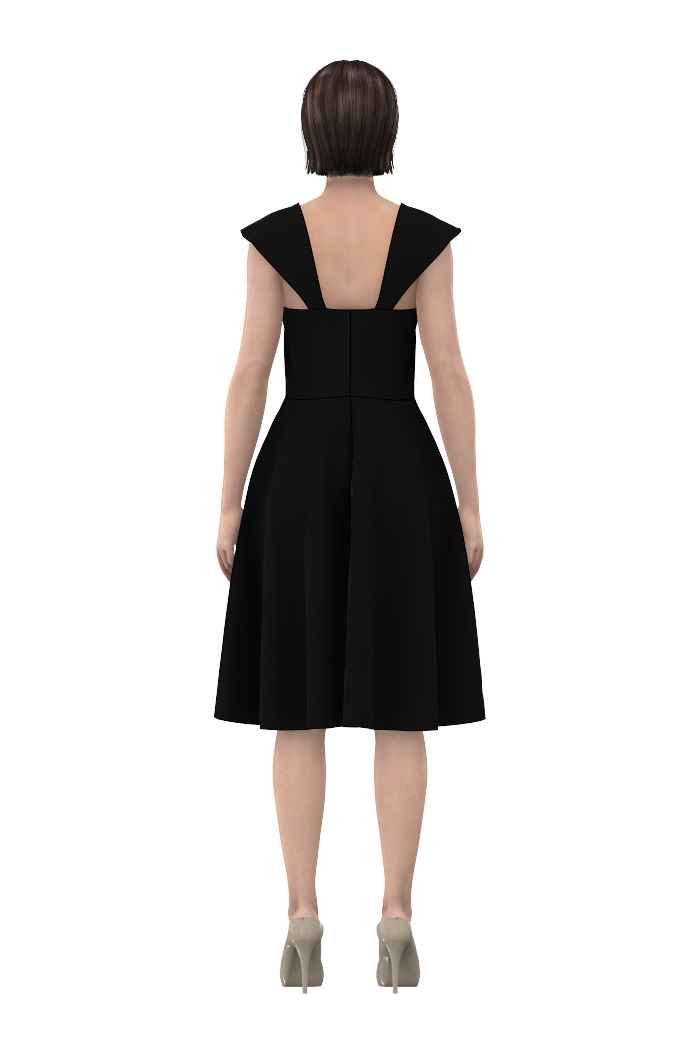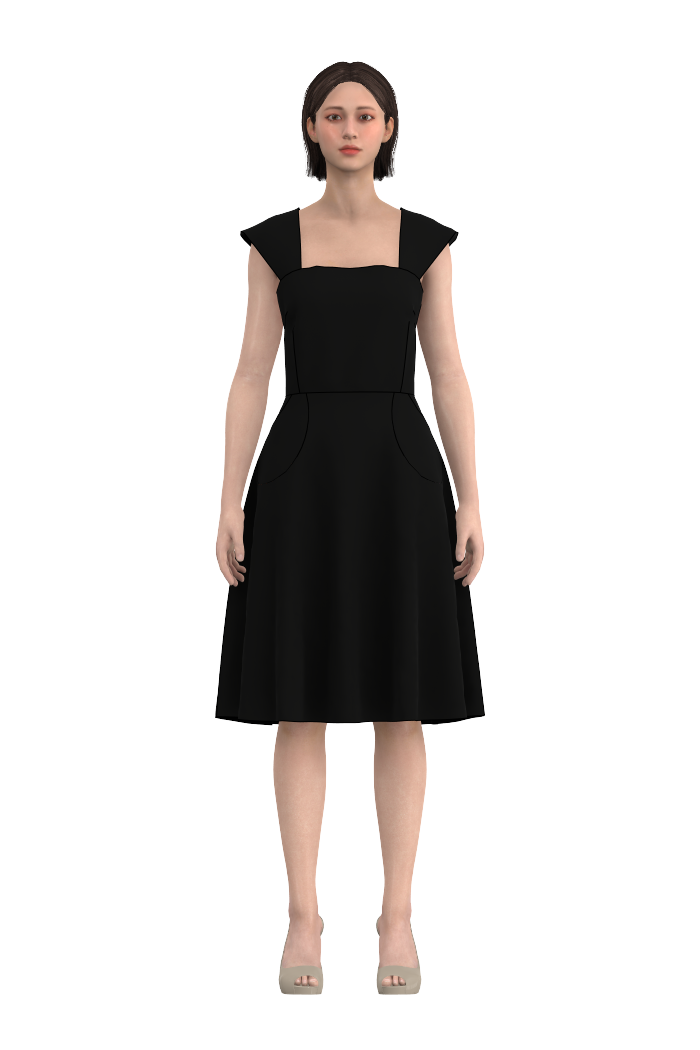 Britta har en tajt passform upptill vid byst med bystinsitt och snygga axeldetaljer. Hon har en markerad midja med en fin skärning och kjoldelen är lätt klockad för vacker passform. Fickorna sitter i sidan och längden på sommarklänningen går ner till vaden.