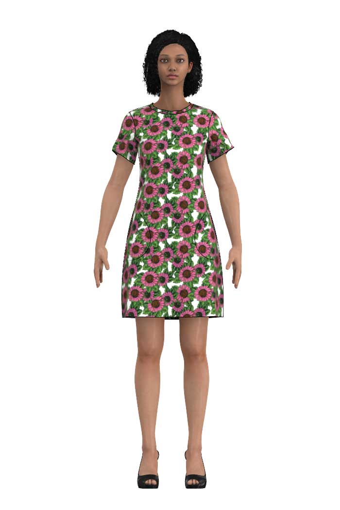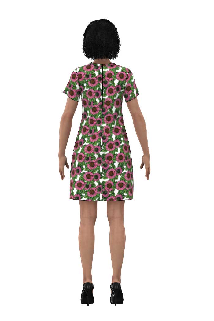 T-SHIRT KLÄNNINGEN FANNY MED ROSA SOLBLOMMOR - SUNFLOWER PINK