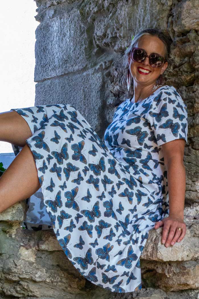 Vi erbjuder klänningen i storlekar upp till 3XL (precis om med alla våra modeller), vilket gör Malin till ett inkluderande och medvetet val – en färgglad klänning som passar många kroppstyper. Matcha gärna med boots, leggings eller en stickad kofta för en både praktisk och chic look. När du bär Malin ButterflyDenim white gör du inte bara ett stilval – du gör ett medvetet val för kvalitet, färg och hållbarhet.