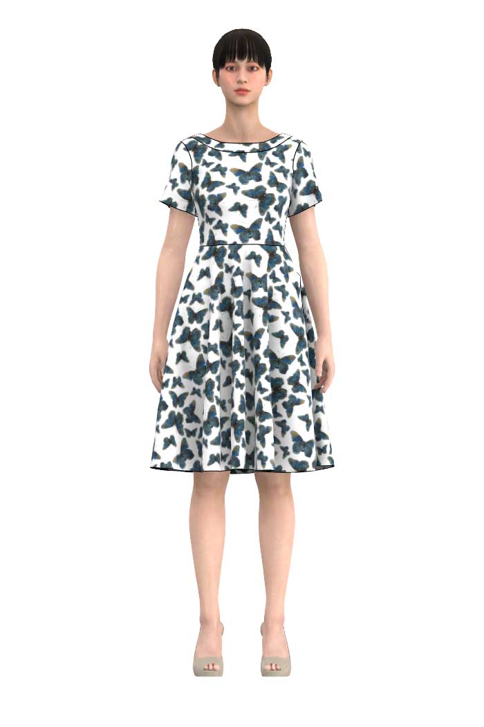 KLÄNNING MALIN I FJÄRILSMÖNSTER - BUTTERFLYDENIM WHITE