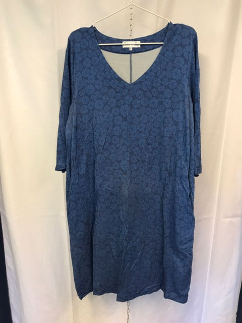 Klänning Ewa slutar strax ovanför knät och v-halsringningen är fodrad. Längden gör att den funkar lika bra barbent som med strumpbyxor och leggings. Och på vintern hur bra som helst ihop med jeans! Klänningen är lite lätt utställd men mesta dels ganska så rak och passformen är generellt lös över hela klänningen. Ewa har både byst insnitt och fickor fram.